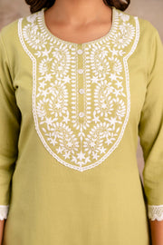 Elegant Embroidered Yoke Cotton Dupatta Set – Light Green | Aaronee